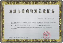 2006年荣获深圳市《深圳市重点物流企业》荣誉称号并获得奖励