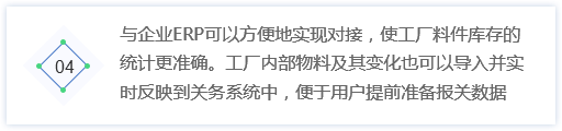保税区仓储申报系统是由易网通电子网络系统(深圳)有限公司研发,面向海关特殊监管区域和场所,运用现代科技手段,涉及企业仓储、数据交换、企业报关数据申报及企业物流服务,帮助特殊监管区域和场所的仓储物流企业对海关账册、物料号、备案序号以及报关单证进行管理,以实现一次信息输入,规避多次录入的失误风险。所有申报节点,可在线实时跟踪。